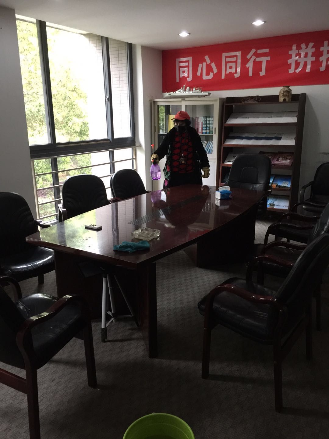 公司準備了充足的防疫物資:消毒水、酒精、口罩、體溫槍、手套等。